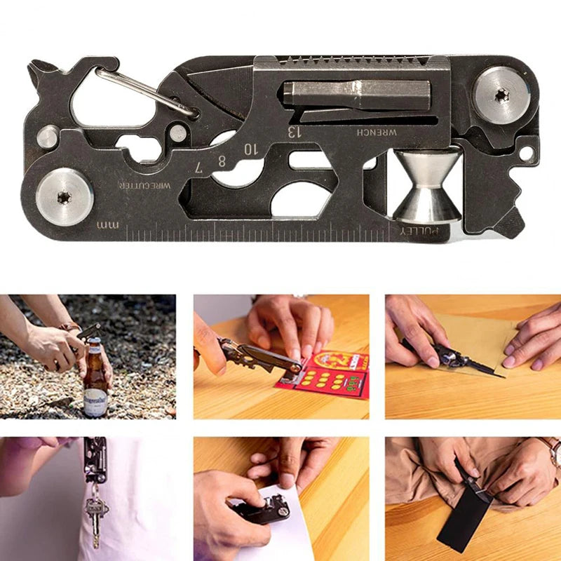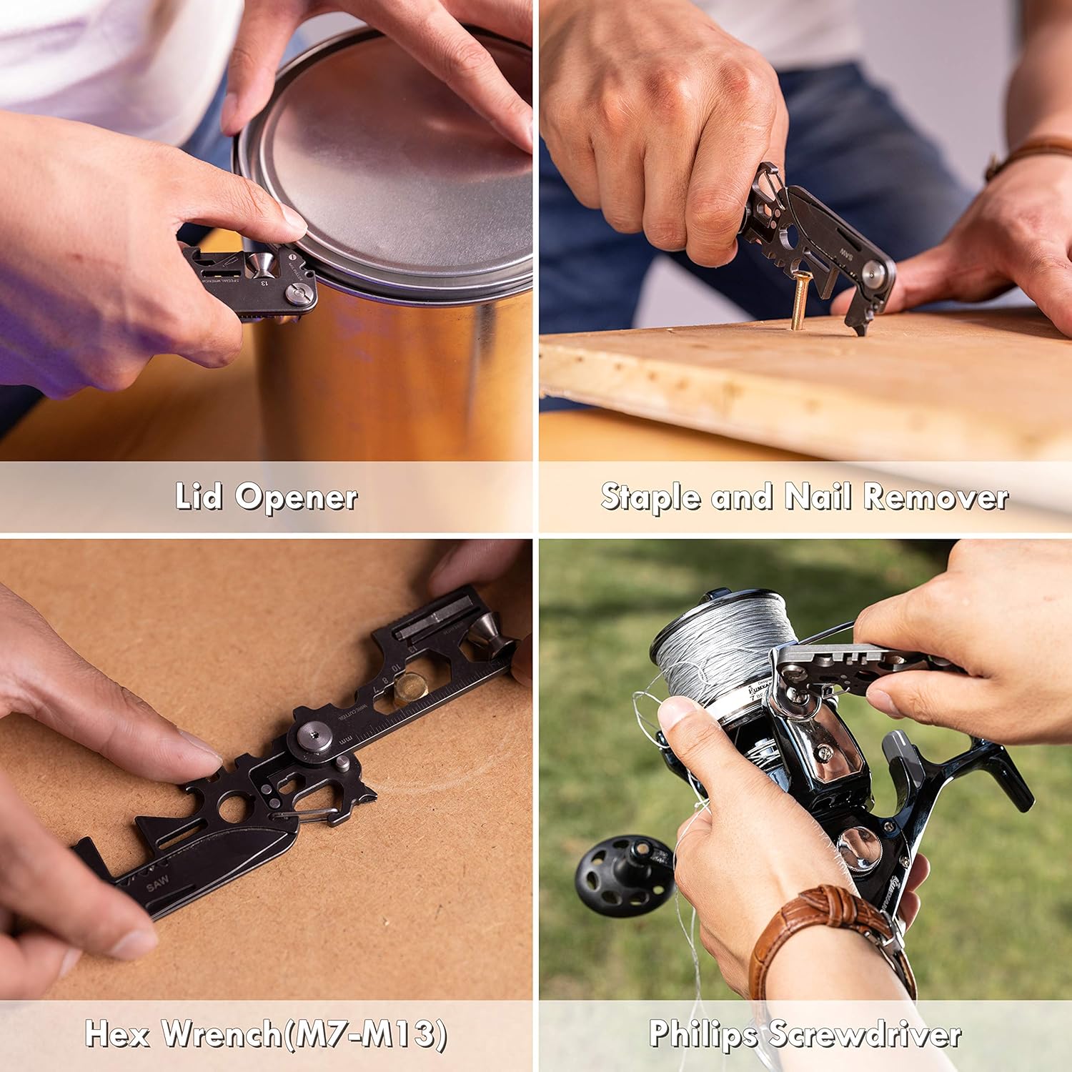 - Multi-Functional: Functions include can opener, bottle opener, metric ruler, hex wrench, pocket cutter, wire buckle, staple nail remover, tag breaker, and more, providing versatility for various tasks.